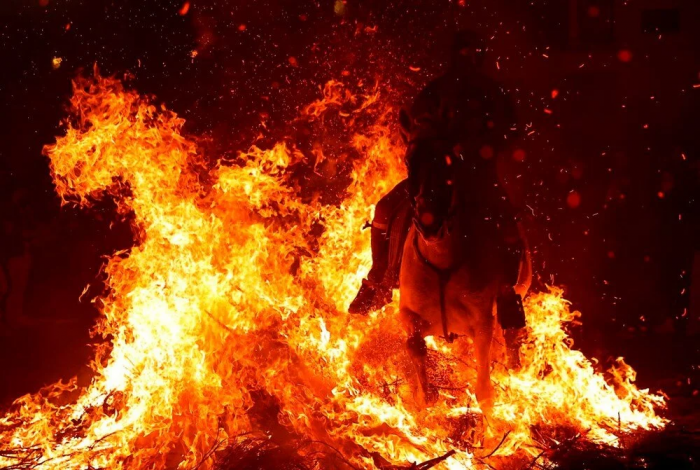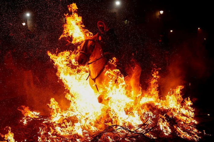 İspanya'nın orta bölgesindeki Avila kentinin San Bartolome de Pinares köyünde, 18. yüzyıldan kalma "Las Luminarias" geleneği kapsamında atlar "kötü ruhlardan arındırılmak" için ateşin üzerinden atlatıldı.