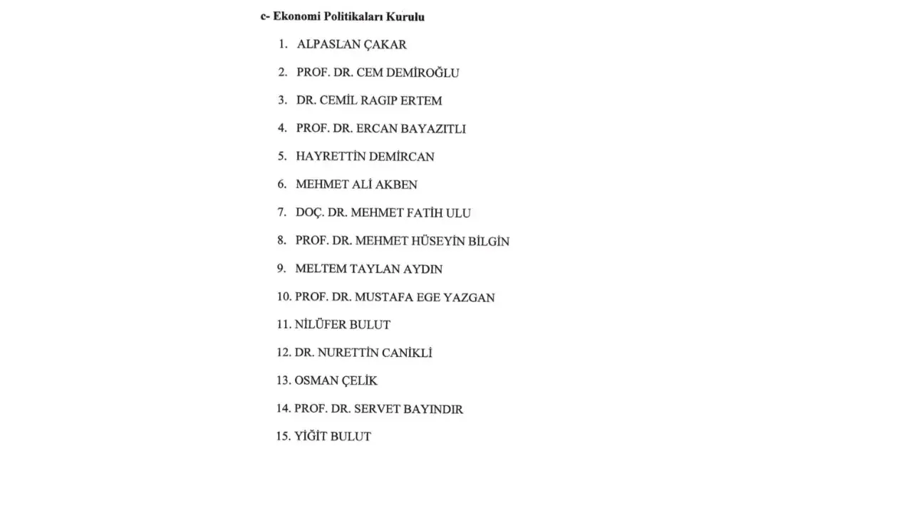 Bulut ile birlikte Ekonomi Politika Kurulu üyeliğine 14 kişi daha atandı. Atananların listesi şöyle: