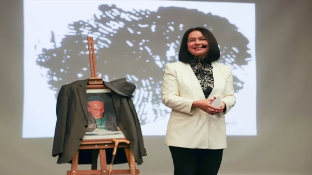 Şatıroğlu, OMÜ Kongre ve Kültür Merkezi'ndeki programda dedesi Aşık Veysel'in anıları ile ilgili sunum yaptı.