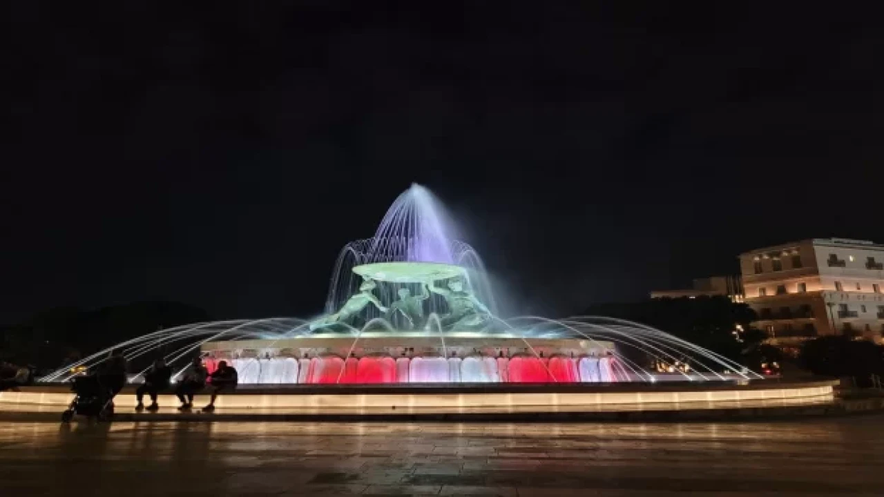 Muhalif. Cumhuriyet’in 100. yılında Malta’nın simge çeşmesi kırmızıbeyaz renklerle aydınlatıldı