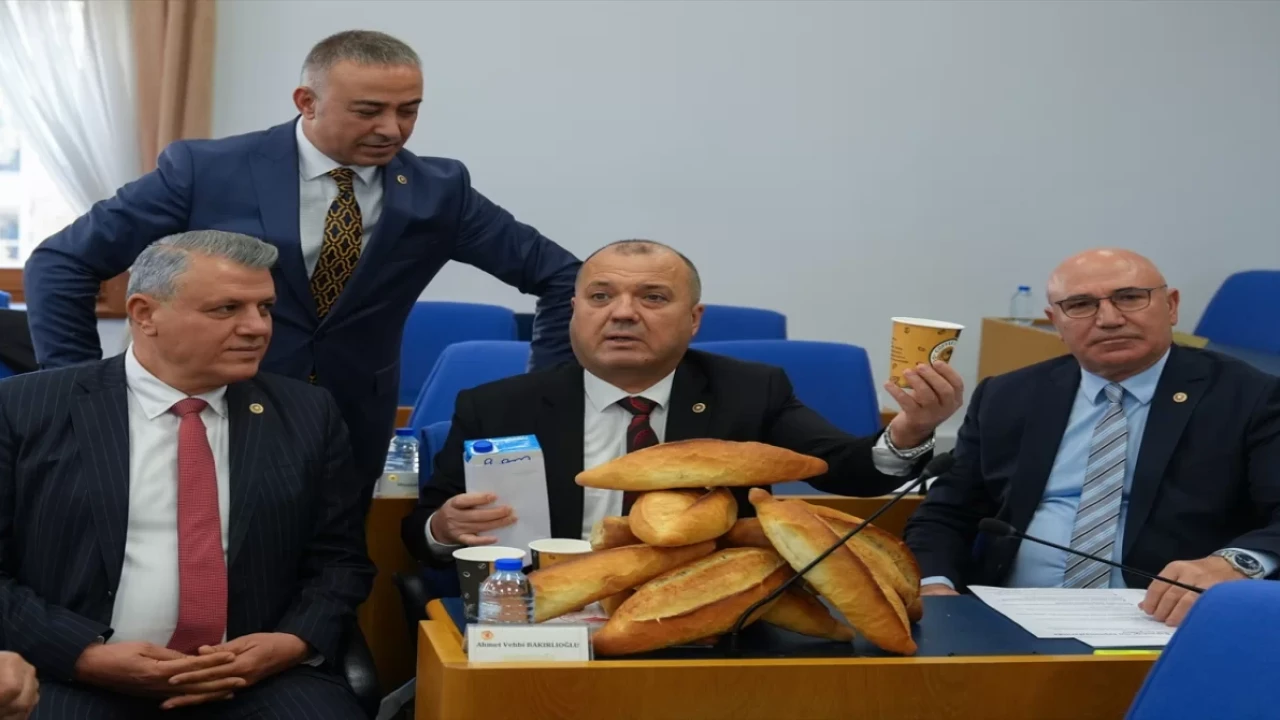 Komisyonda, bazı CHP milletvekilleri, getirdikleri ekmek ve sütleri masalarının üzerine koydu.