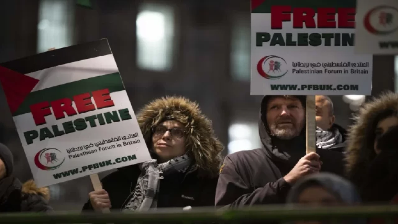 Göstericiler, dün Birleşmiş Milletler (BM) Genel Kurulunda Gazze'de acil ateşkes talebiyle oylanan karar tasarısında "çekimser" oy kullanan İngiltere'ye de tepki gösterdi.