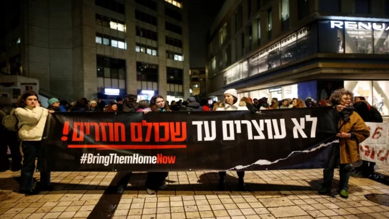 Yaklaşık beş yüz kişilik bir grup, Tel Aviv’de "Rehineler Meydanı" adını verdikleri İsrail Müzesi'nin önündeki alanda toplandı.