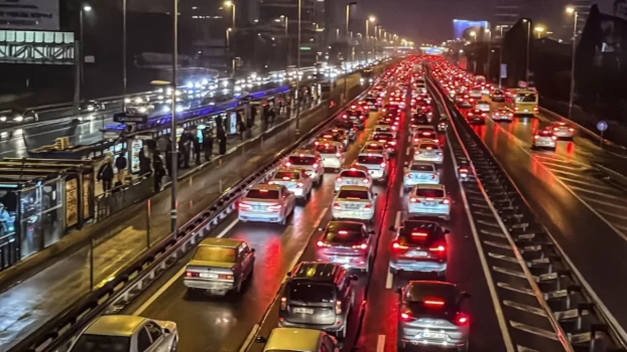 İSTANBUL (AA) İstanbul'da haftanın son iş günü mesai bitiminde kent genelindeki trafik yoğunluğu yüzde 80'e ulaştı.
