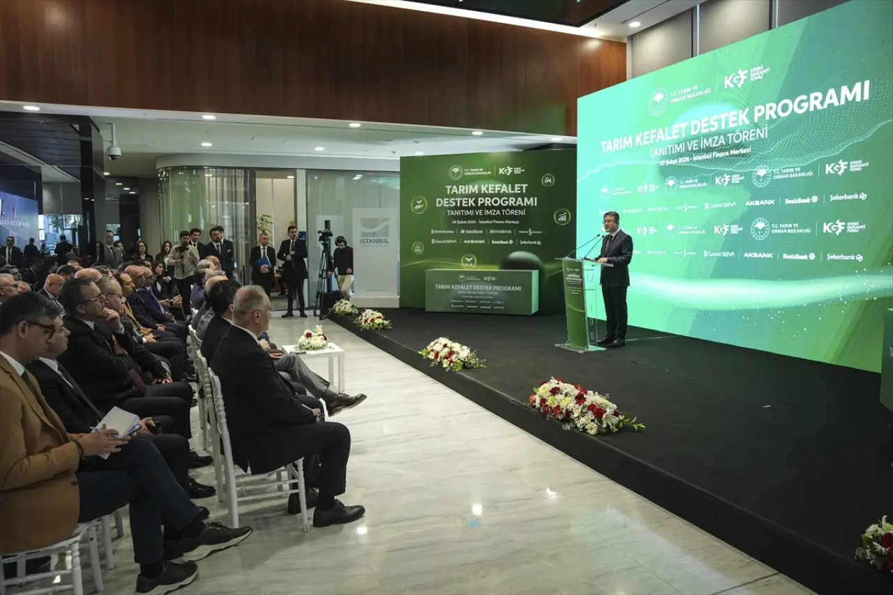 Tarım ve Orman Bakanı İbrahim Yumaklı’nın katılımıyla Tarım Kefalet Destek Programı Tanıtımı ve İmza Töreni, İstanbul Finans Merkezi’nde düzenlendi. Sekiz kamu ve özel bankanın yer aldığı program kapsamında, ilk aşamada 30 milyar liralık tarımsal krediye teminat sağlanacak.
