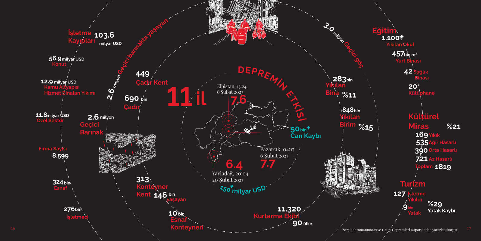 İki ana bölümden oluşan raporun birinci bölümünde; Göksu’nun deprem bölgesinde yaptığı gözlemler, Cumhurbaşkanlığı Strateji ve Bütçe Başkanlığı’nın Mart 2023 tarihli ‘’ Kahramanmaraş ve Hatay Depremleri Raporu’’ ile Çevre, Şehircilik ve İklim Değişikliği, AFAD, TOKİ, Emlak Konut bilgilendirme notları ile basın haberlerinden edindiği bilgilerin analizleri yer almaktadır. Depremin etkisi rakamlarla ve görsel dille anlaşılır hale getirilmiştir.