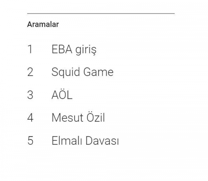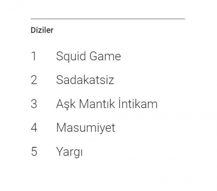 Listenin ikinci sırasında dünya genelinde trend olan Güney Kore dizisi Squid Game yer aldı.