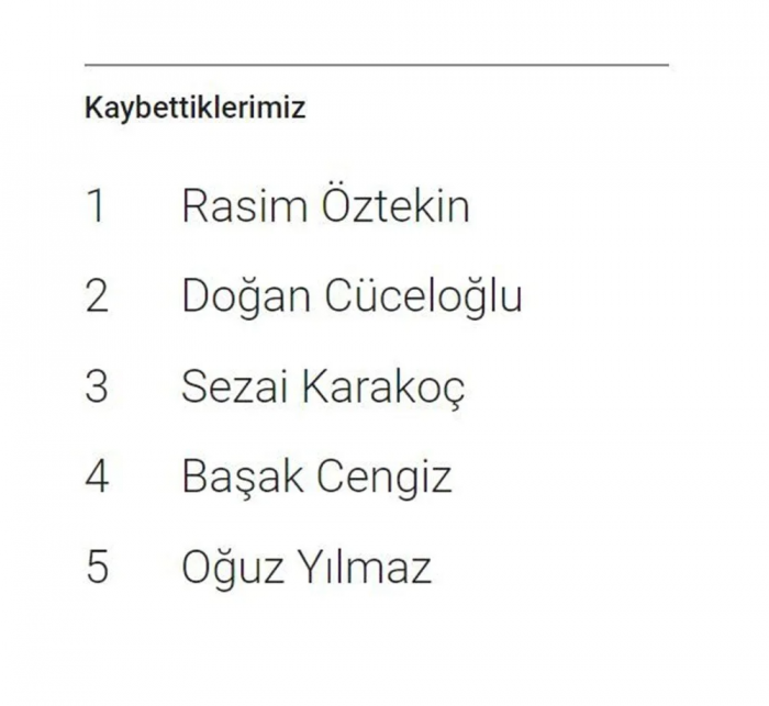 Listede ünlü olmayan tek isim Başak Cengiz oldu. Genç kadın geçici olarak geldiği İstanbul'da samuray kılıçlı saldırıyla hayatını kaybetmişti.