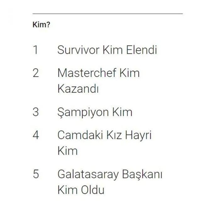 Bu listeye bakıldığında Türkiye'nin en çok merak ettiği isimlerin spor dünyasında yer aldığını söylemek mümkün. Futbolun ağırlığı sporda öne çıkıyor.
