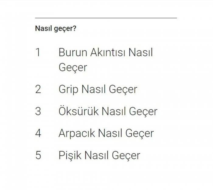 Listede, Grip Nasıl Geçer, Öksürük Nasıl Geçer, Arpacık Nasıl Geçer ve Pişik Nasıl Geçer aramaları kendine yer buldu.