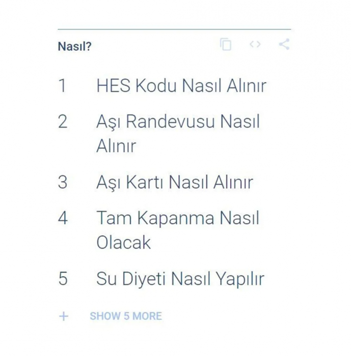 Covid-19'la ilgili aramalar listenin ilk sırasını doldurdu. Son sırada ise "Su Diyeti Nasıl Yapılır" yer aldı.