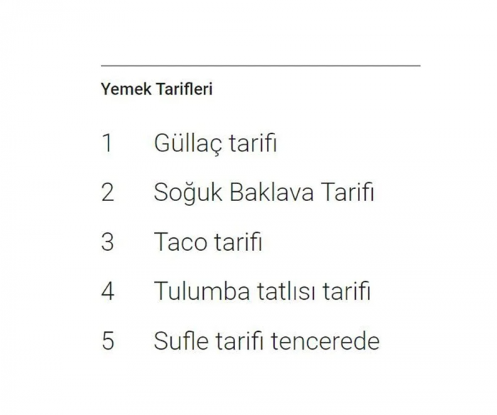 Yemek tariflerinde ise en çok merak edilen Güllaç oldu.