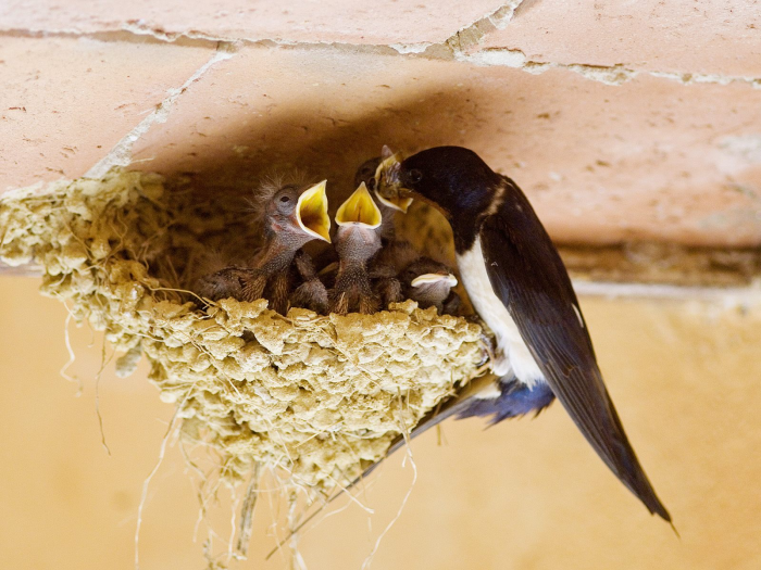 Kırlangıçlar, kendilerine çamurdan yapılmış yuvalar inşa ederler.