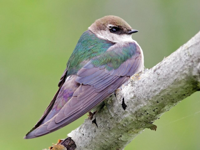 En yaygın kırlangıç tüyleri , üstte parlak koyu mavi veya yeşil, düz veya çizgili alt kısımlar, genellikle beyaz veya kızıldır.
