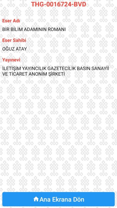 Korsan kitabımızda (solda) bandrol bulunmuyor. Orijinal kitabımızdaki (sağda) bandrol, karekoda ve "THG 0016724 BVD" seri numarasına sahip. T.C. Kültür Bakanlığı Telif Hakları Genel Müdürlüğünün mobil uygulaması olan Bandrol Sorgu uygulamasında sorguladığımızda da bandrol bilgilerinin doğru olduğunu görüyoruz.