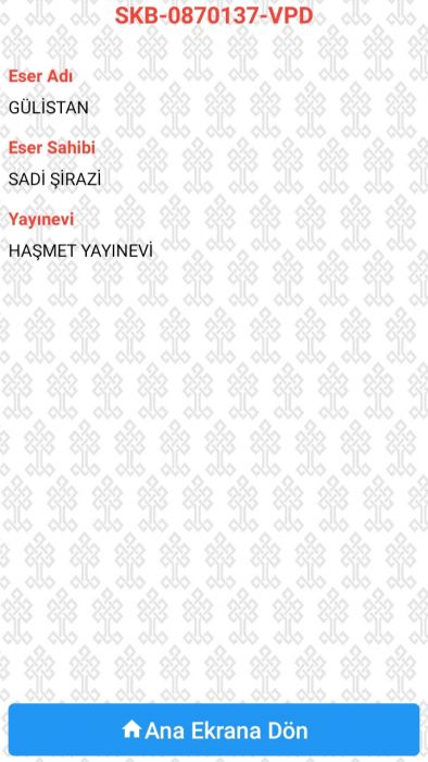 Sait Faik Abasıyanık'tan Seçme Hikâyeler ismiyle Düş Ülkesi Yayınları'ndan yayınlanmış ve Mehmet Türkçetin'in hazırladığı kitabın bandrolünü (SKB 0870137 VPD) sorguladığımda, Haşmet Yayınevi'nin yayınladığı Sadi Şirazi'nin Gülistan isimli kitabı karşıma çıktı.