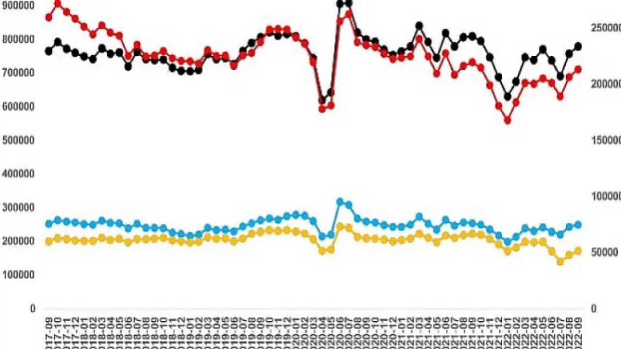 Satılan konut sayısının toplam satılık ilan sayısına oranı Haziran ve Temmuz aylarında görülen belirgin düşüşün ardından Ağustos ayında bir miktar yükseldi. Bu oran Eylül’de bir önceki aya kıyasla 1 puan azalarak yüzde 5,1 oldu. Satılık ilan sayısı önceki aya göre yüzde 2,8 (756.805’ten 778.180’e) yükselirken, satılan konut sayısı ise yüzde 14 (46.373’ten 39.856’ya) oranında düştü. Satılan konut sayısı Haziran’da önceki aya göre 13.361, Temmuz’da ise önceki aya göre 32.621 azalmıştı. Satılan konut sayısı Ağustos’ta bir miktar artsa da Eylül’de bir önceki aya kıyasla 6.507 düştü. Satılan konut sayısı Mayıs ayına kıyasla yaklaşık 47 bin düştü.