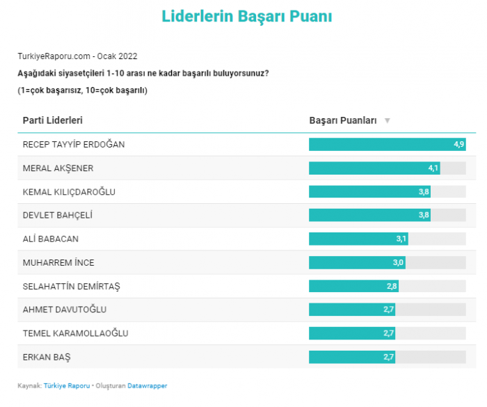 Araştırmaya katılanlara 'Aşağıdaki siyasetçileri 1-10 arası ne kadar başarılı buluyorsunuz?', diye soruldu.