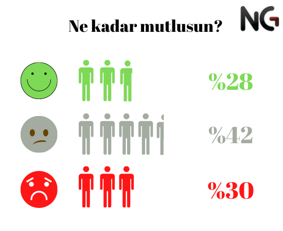 Yapılan bir araştırmaya göre; Türkiye'de 10 kişiden 3'ü kendini mutlu hissediyor. Stres seviyesi üzerine çıkan sonuçlara göre ise de 10 kişiden 6'sı stresli.