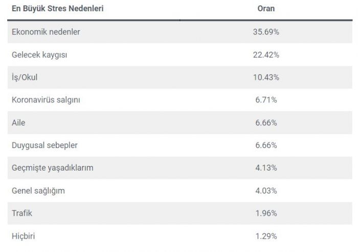 Her 3 kişiden 1’inin en büyük stres kaynağı ekonomik sebepler. 5 kişiden 1’inin ise gelecek kaygısı.