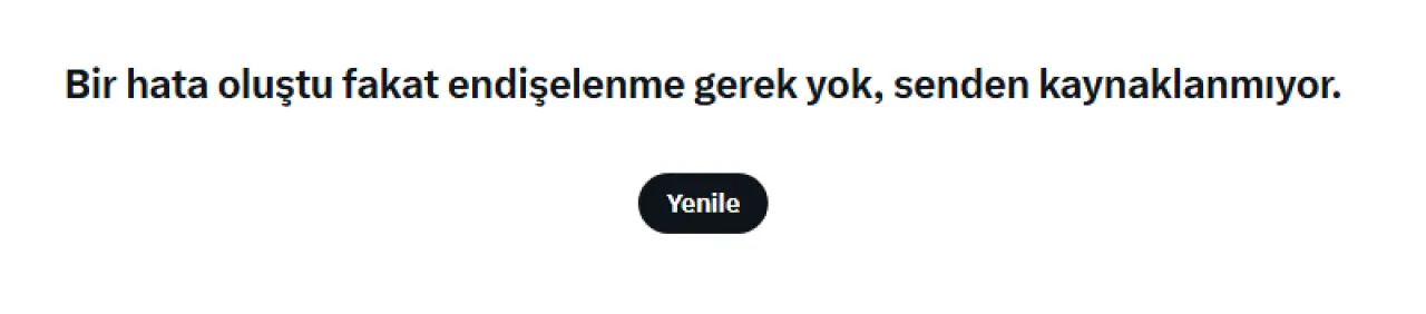 Twitter'a girmek isteyen vatandaşları, ‘Bir hata oluştu fakat endişelenme gerek yok, senden kaynaklanmıyor.’ iletisiyle karşılıyor. Ancak henüz nedeni bilinmiyor.
