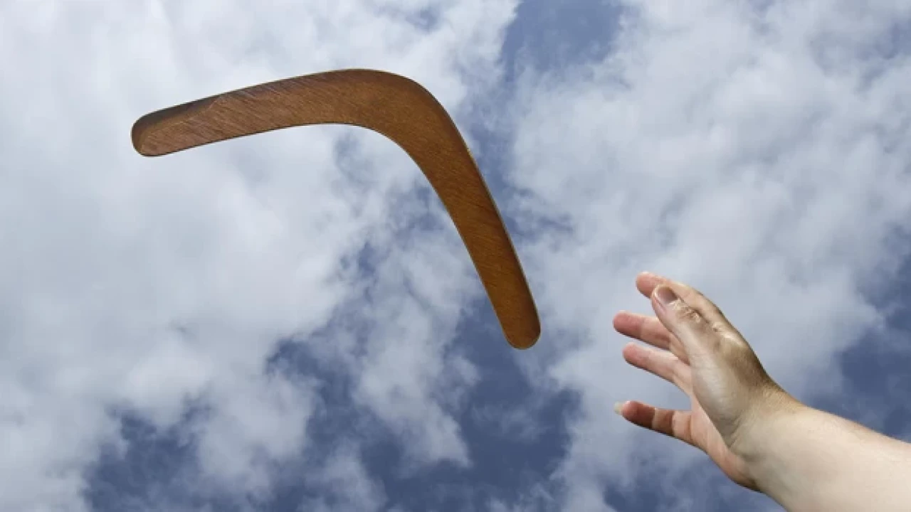Üzerinde oluşan yerçekimi etkisiyle, havanın yarattığı bu kaldırma etkisi eşdeğerdir. Bu da bumerangın tıpkı bir helikopter gibi uçmasını sağlar. Fakat helikopter ve uçakların aksine, bumeranglar fırlatıldığı anda hangi taraftan tutulduysa, o kısımda daha çok itme etkisi gerçekleşmiştir. Bu da merkez noktasında sabit bir güç yaratır ve eninde sonunda gücün dengelenmesi için 90 derecelik bir hareketle aksi yöne doğru dönmeye başlar.