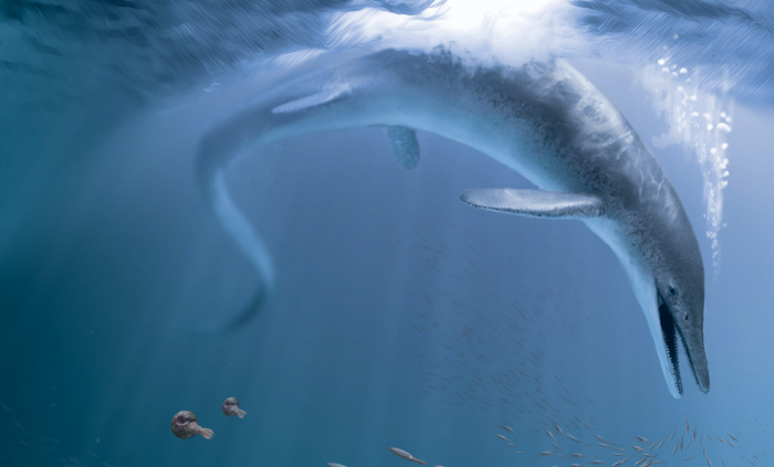 Dev hayvan, dünyada dinozorların var olduğu çağlarda bugünkünden daha geniş okyanuslarda yaşayan balık şeklindeki deniz sürüngenleri olan ihtiyozor türünün bir üyesi. Evrim açısından kısa bir süre olan 2.5 milyon yıl gibi bir zaman zarfında bu boyutlara ulaşmış olması ise asıl dikkate değer nokta.