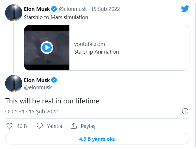 Muhalif. BİLİM - TEKNOLOJİ Elon Musk, Starship'le Mars'a yolculuğun simülasyonunu paylaştı