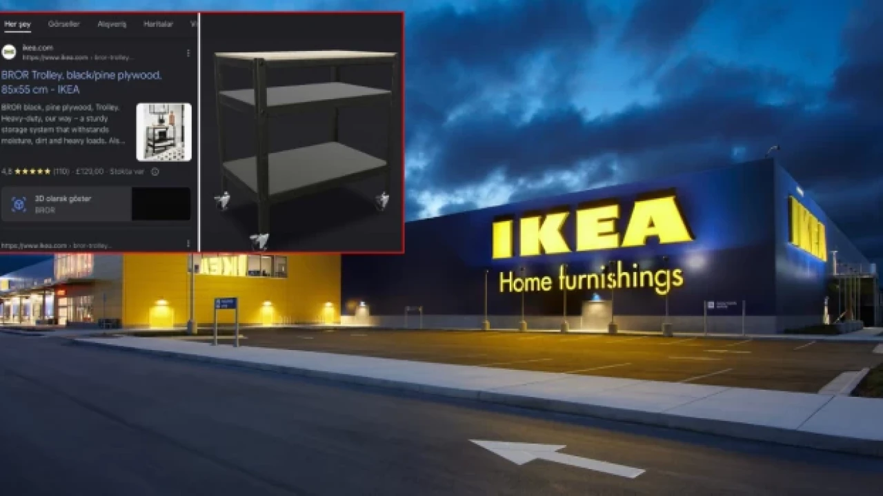IKEA’nın bazı ürünlerini Google’da arattığınızda bu ürünleri gerçek boyutlarıyla, istediğiniz ortama koyma imkânına kavuşabilirsiniz. Örneğin, ‘BROR Trolley’ ürününü Google’da arattıktan sonra bulunduğunuz yerde şu şekilde bir manzara oluşturabilirsiniz: