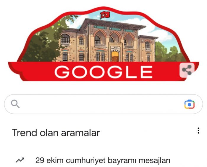Google, ana sayfasındaki Cumhuriyet Bayramı’na özel ”doodle” ile Cumhuriyet Bayramı’nı kutluyor.