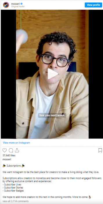Mosseri, Çarşamba günü yeni özellikleri açıklayan bir Instagram gönderisinde "İçerik üreticileri, hayatlarını kazanmak için ne yaparlarsa onu yaparlar ve bunun tahmin edilebilir olması önemlidi. Abonelikler, öngörülebilir bir gelir elde etmenin en iyi yollarından biri" ifadelerini kullandı.