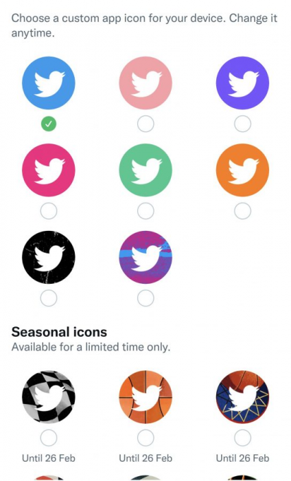 Yukarıda gördüğünüz simge değiştirme özelliği Twitter Blue abonelik sistemine üye olan iOS kullanıcılarına daha önceden sunulmuştu. Şimdi ise bu özellik Android kullanıcılarına açılıyor. Bu özellik ile Twitter’ın ana ekranda yer alan simgesini çok farklı renklerde ve mevsimlere göre farklı tarzlarda değiştirebilme imkanınız olacak. Böylece Twitter’ın standart mavi simgesinden kurtulacaksınız.