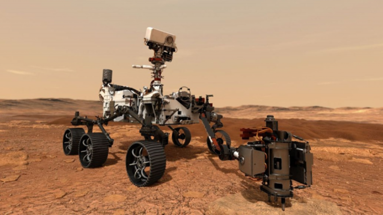 Perseverance'ın 2 metre uzunluğundaki robotik kolunun ucunda delme ve karot alma sistemi bulunuyor.