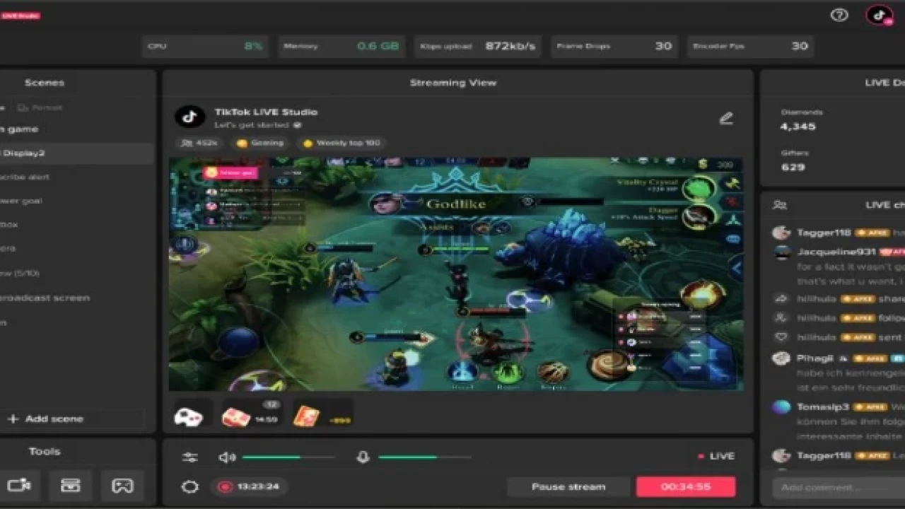 TikTok kullanıcıları, LIVE Studio'yu kullanarak aynı anda en fazla 10 sahneyi özelleştirebiliyor. Her sahne, farklı kaynaklardan video ve ses çekmeyi mümkün kılıyor. Bu da kullanıcılara Elgato capture kartı gibi cihazlardan veya Steam gibi programlardan alınan içerikleri canlı olarak TikTok üzerinde paylaşma olanağı tanıyor.