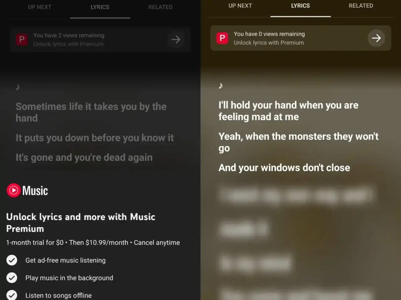 YouTube Music, son aylarda yürüttüğü testlerin ardından şarkı sözü görüntüleme özelliğinde önemli bir değişikliğe gitti. Uygulama, şarkı sözlerini artık Premium abonelik kapsamına almaya başladı.