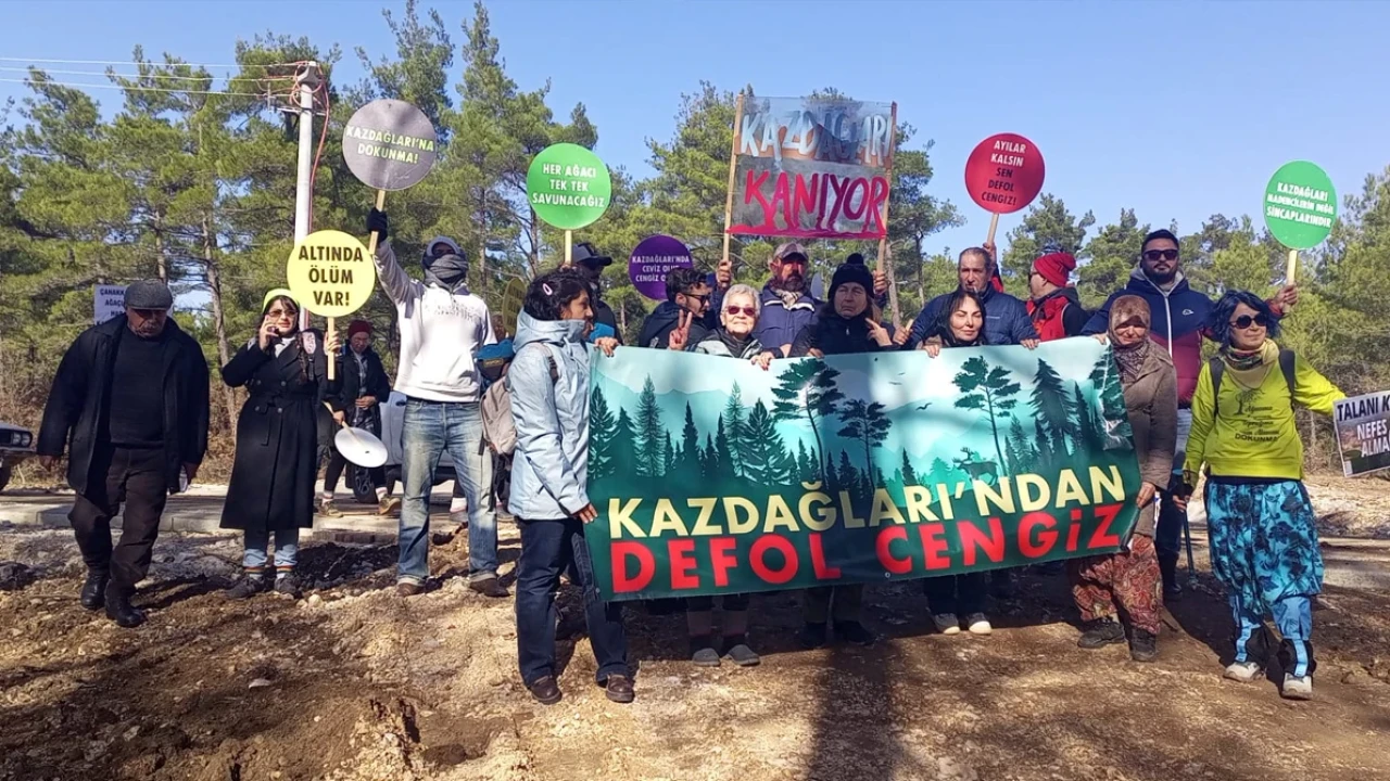Kaz Dağları’nda bakır altın madeni işletmek isteyen Cengiz Holding’e bağlı Truva Bakır A.Ş Hacıbekirler köyü yakınındaki ormanlık alanda bir aydır kesim yapıyor. Kesimin yapıldığı alanda “Kaz Dağı’ndan defol Cengiz” pankartı ile maden kamyonlarının önünü keserek çalışmalara engel olmaya çalışan yaşam savunucuları, soğuk, fırtına ve yağışlı havaya aldırış etmeden direnişi sürdürüyor. Kaz Dağları Ekoloji Platformu Koordinasyon üyesi Füsun Kayra, BirGün’e yaptığı açıklamada ‘‘Kesimin üçte ikisinden fazlası bitti. 600-700 bini geçen ağaç kesimi yapıldı. Alanda 1 milyon hatta daha da fazla ağaç kesilecek’’ dedi. Geçen hafta Yanıklar Köyü mevkiindeki Truva Bakır Maden İşletmeleri A.Ş. tarafından yapılması planlanan Feldspat Ocağı projesi ile ilgili “ÇED gerekli değildir” kararının iptali için açılan davada yürütmeyi durdurma kararı çıktığını anımsatan Kayra ‘‘Bu önemli bir karardı’’ diye konuştu. Çalışmaların yapıldığı ve 'ÇED olumlu' kararı veilen bölgenin 6 bin dönüm olduğunu anlatan Kayra ‘‘Yürütmenin durdurulması için açtığımız dava 5 aydır Danıştay'da. Bilirkişi raporu 'burada böyle bir maden açılamaz, kamu yararı yoktur' demişti. Danıştay'dan çıkacak kararı bekliyoruz. ‘Hukukun prensipleri geçiyor olsaydı Danıştay süreci devam eden bir yerde böyle bir şeye başlanmazdı’’ dedi.