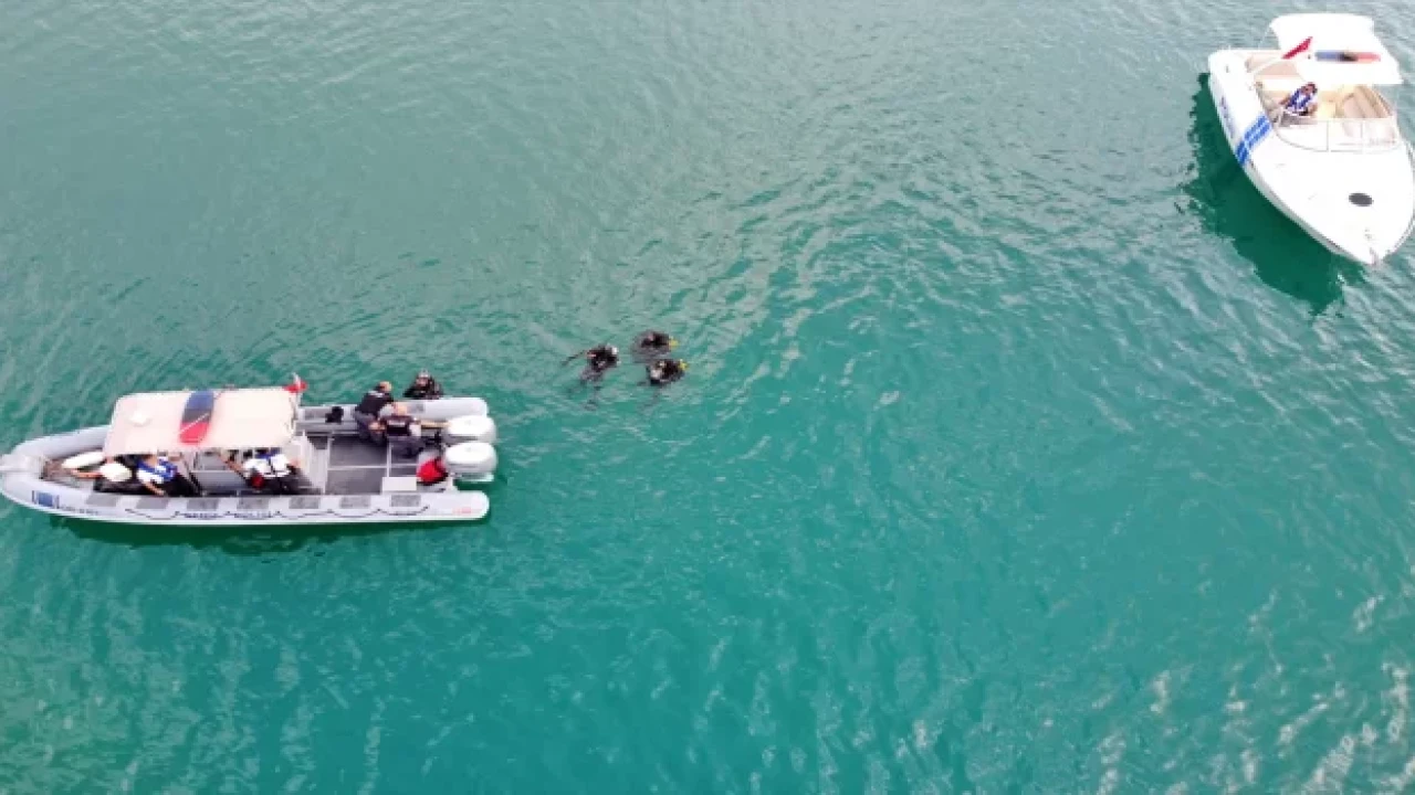 Adana’da su altı polisleri Seyhan Gölü’nde çöp topladı