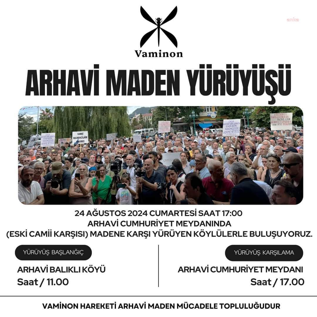 Arhavi'de bölge halkı, HES ve taş ocağının ardından şimdi de maden ocağına karşı mücadele ediyor. 10 köyü içine alacak olan 1930,92 hektarlık alanı kapsayan maden arama ihalesini Mehmet Cengiz’in sahibi olduğu Eti Bakır kazandı. İlçe sakinleri ve köylüler ise maden aramasına tepki göstermek için yürüyüşe hazırlanıyor. 24 Ağustos Cumartesi saat 11.00'de Arhavi Balıklı köyünden, köy halkının katılımıyla başlayacak olan maden yürüyüşü, saat 17.00'de Arhavi’de Cumhuriyet Meydanı’nda basın açıklamasıyla sona erecek.