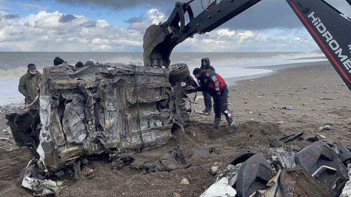 Kastamonu'nun Bozkurt ilçesinde 11 Ağustos 2021'de meydana gelen sel felaketinde kaybolduğu tespit edilen araç, Abana ilçesinde sahile vurdu.