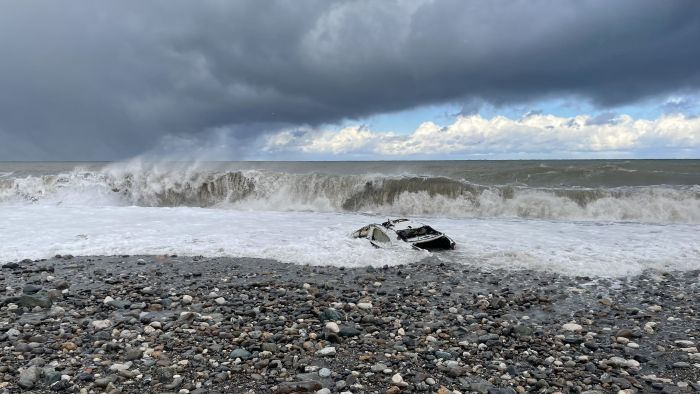 Sahilde yürüyüş yapan vatandaşlar, dalgaların kıyıya büyük bir cisim sürüklediğini gördü. Kıyıya sürüklenen cismin araç olduğunu fark eden vatandaşlar, durumu Abana İlçe Emniyet Amirliğine ve belediyeye bildirdi.