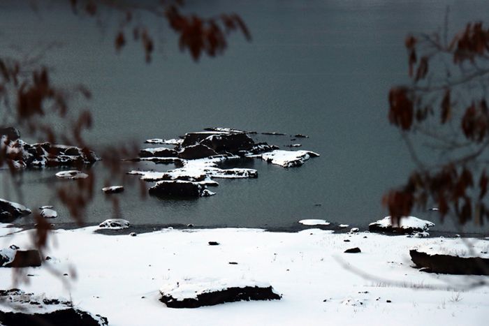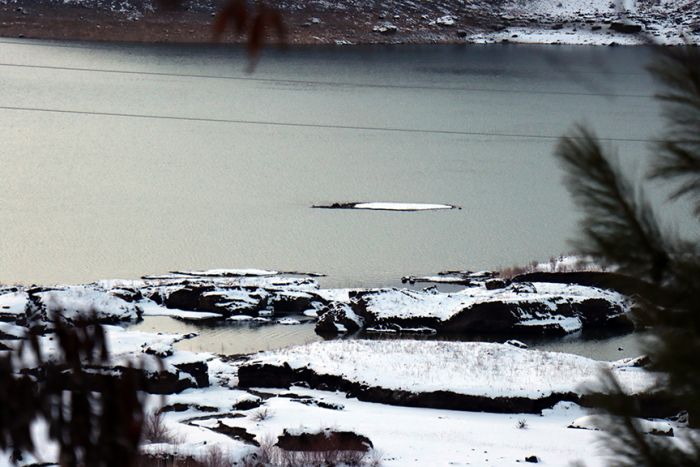 Doğal güzelliğiyle her mevsim özellikle yerli turistlerin ilgi gösterdiği barajın kıyılarındaki yüzen adalar, ilçede hava sıcaklığının sıfırın altına düşmesiyle buz tuttu.