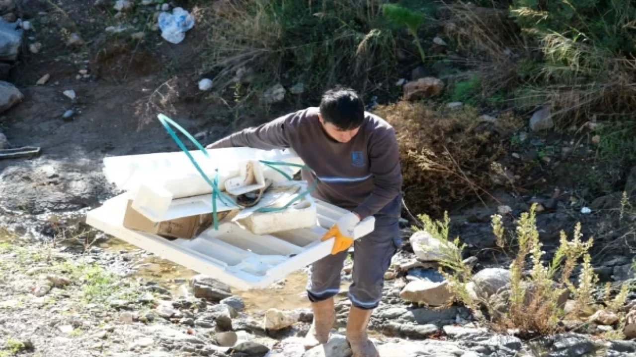 Temizlik İşleri Müdürlüğü ekipleri, Bitez'de yaptıkları çalışmada hem çevreye zarar veren hem de yağmur suyu hatlarını tıkayabilecek yoğunluktaki dere yatağında beyaz eşya atıkları tespit etti.