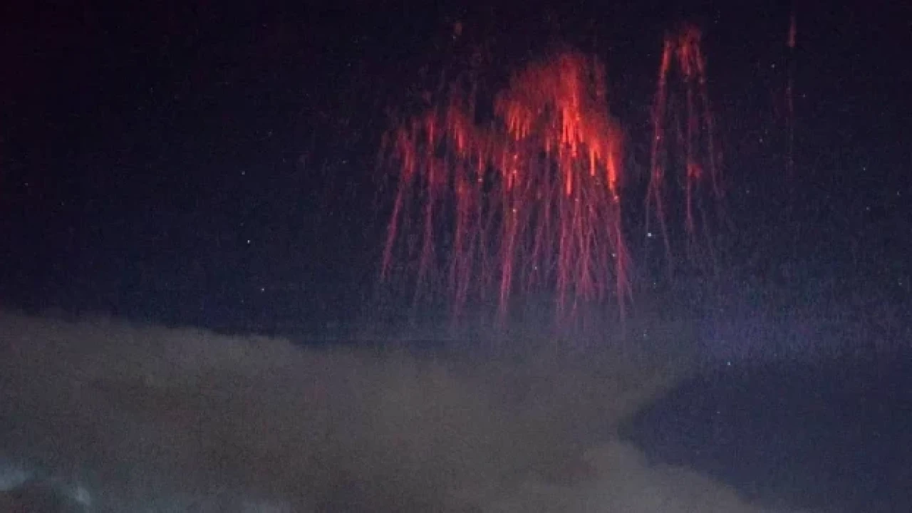 Gökyüzündeki gerçekleşen bir hava olayı olan Kızıl Cin Ege Denizi üzerinde görüldü.