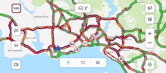 Saat 18.20 sıralarında İstanbul Büyükşehir Belediyesi'nin verilerine göre trafik yoğunluğu yüzde 90'e ulaştı.