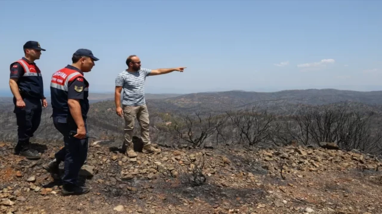 MUSTAFA GÜNGÖR Marmaris'te orman yangının etkili olduğu alanda yaban hayatı üzerine yürüttüğü çalışmalarla tanınan Muğla Sıtkı Koçman Üniversitesi Öğretim Görevlisi Dr. Yasin İlemin, Jandarma Çevre Doğa ve Hayvanları Koruma Timleri ile birlikte yaban hayvanlarına yardım etmek ve son durumlarına ilişkin tespitler yapmak üzere devriye görevi yürütüyor.