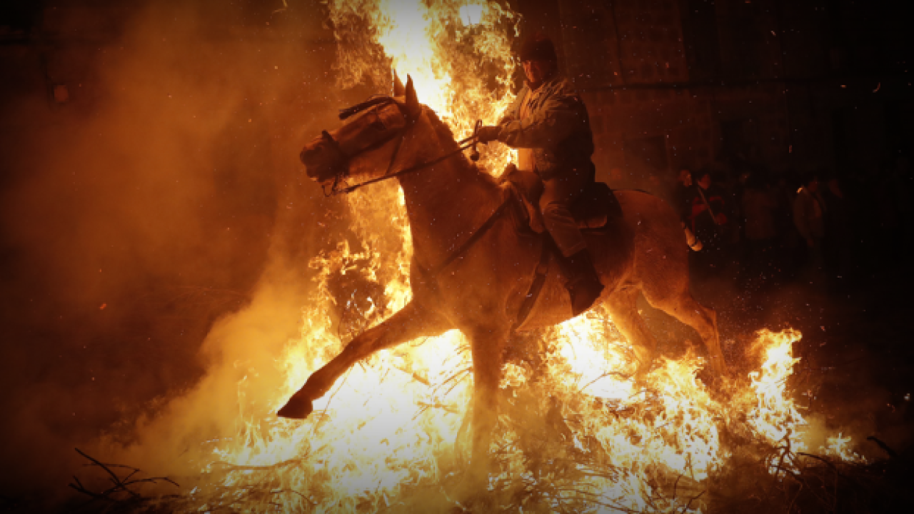 İspanya'nın Avila kentinin San Bartolome de Pinares köyünde atlar "kötü ruhlardan arındırılmak" için ateş üzerinden atlatıldı. Ateşin üzerinden geçirilen atların acı çektiğini savunan hayvan hakları dernekleri ise bu geleneğin kaldırılmasını talep ediyor.