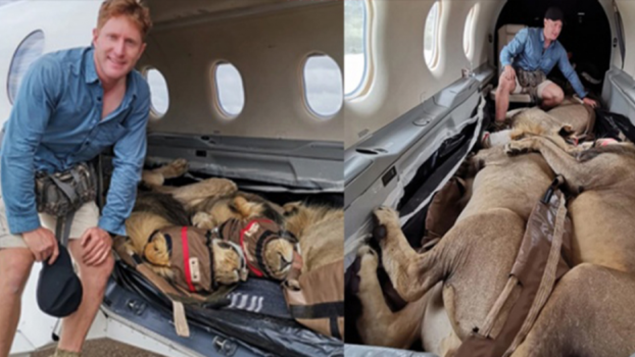 Pilot Menno Parsons, üç aslanı Khamab Kalahari Koruma Alanı’ndan Mabula Av Hayvanları Koruma Alanı’na uçurdu. Aslanlar, Pilatus PC-12 tipi tek motorlu uçakla taşındı. 200 kiloluk dev aslanların uçağa bindirilmeden önce yapılan hazırlıklar ve uçakta çekilen fotoğraflar, The Bateleurs grubunun sosyal medya hesaplarından paylaşıldı.
