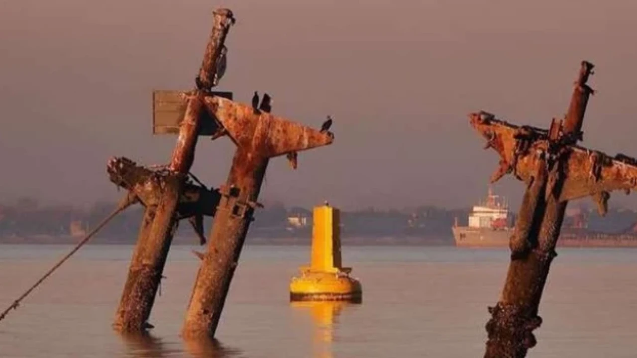 Fransa'nın Cherbourg kentine giderken ikiye bölünen gemi, Ağustos 1944'ten bu yana Thames Nehri Halici'nde batık halde duruyor.