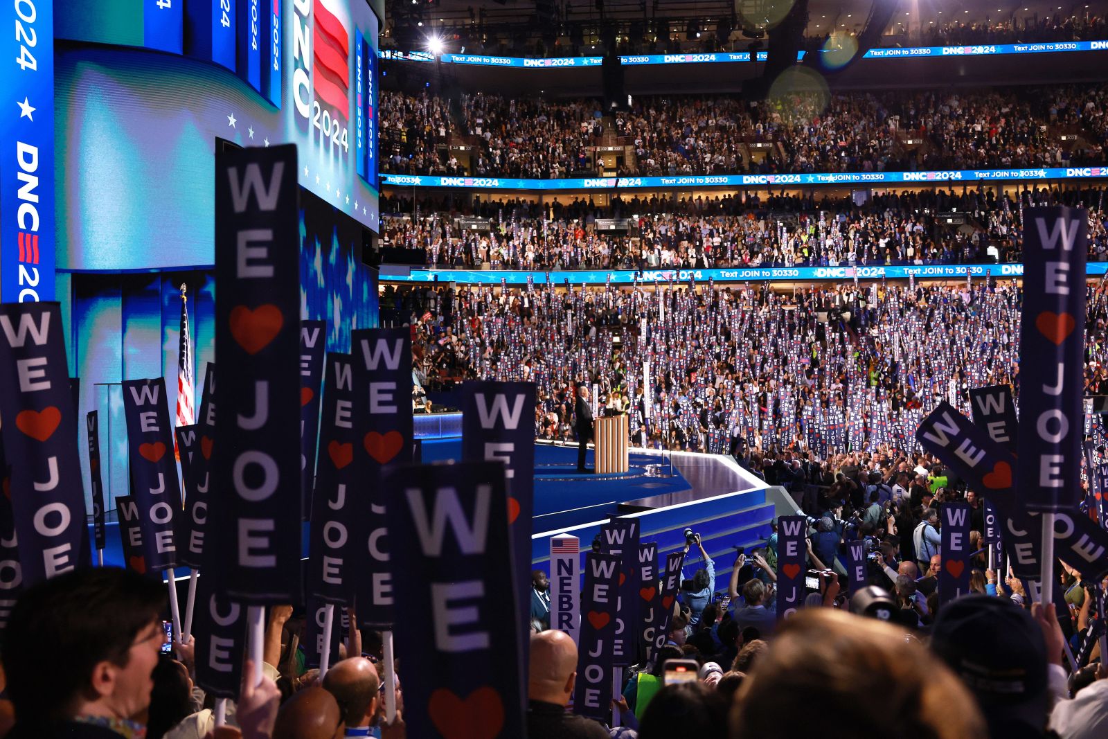 Bir ay önce partililerin baskısıyla adaylıktan çekilen Biden, kongrenin açılış akşamı kızı Ashley’nin tanıtımı ve uzun süren alkışlar eşliğinde kürsüdeki yerini aldı.