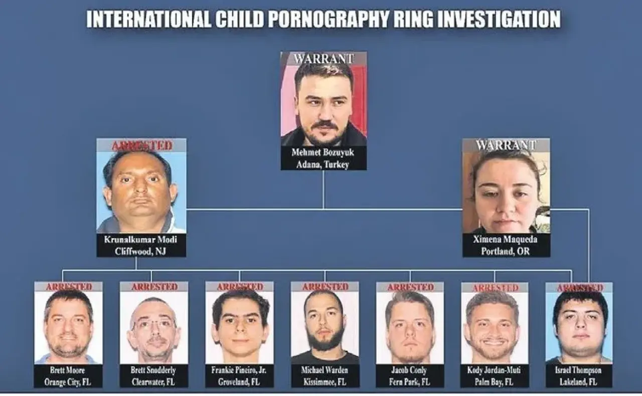 Operasyon kapsamında ABD, Kanada ve diğer ülkelerde 8 kişi gözaltına alındı. Aralarında Brett Ryan Moore, Frankie Pineiro ve Krunalkumar Modi’nin de bulunduğu zanlılar, eyalet dışına müstehcen materyal iletimi ve yasa dışı cihaz kullanımı gibi suçlardan tutuklandı.
